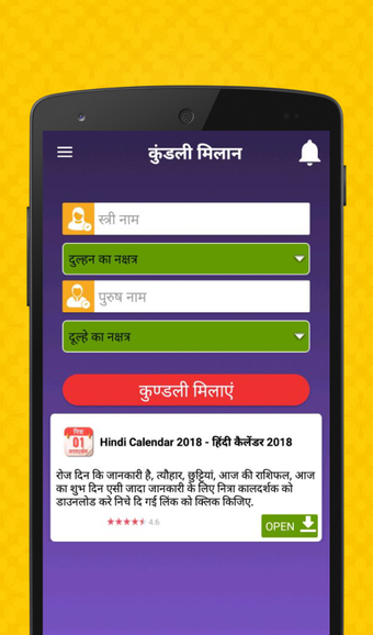 Aplikasi ini didasarkan pada metode Ashtakuta, yang merupakan metode prediksi kesesuaian pernikahan paling populer dan akurat. Ini adalah aplikasi yang sangat sederhana dan mudah digunakan yang memberikan semua detail kesesuaian dalam bentuk grafik. Hasilnya didasarkan pada rasi dan nakshtra pengantin pria dan wanita. Detailnya disajikan dalam bentuk tabel.